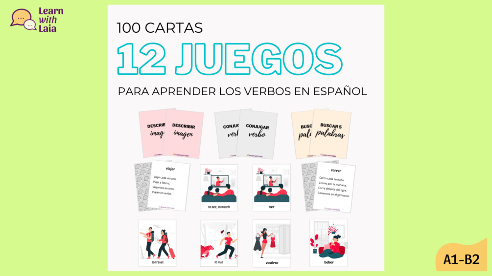 [Cartas + e-book] 100 cartas y 12 juegos para aprender los verbos en español