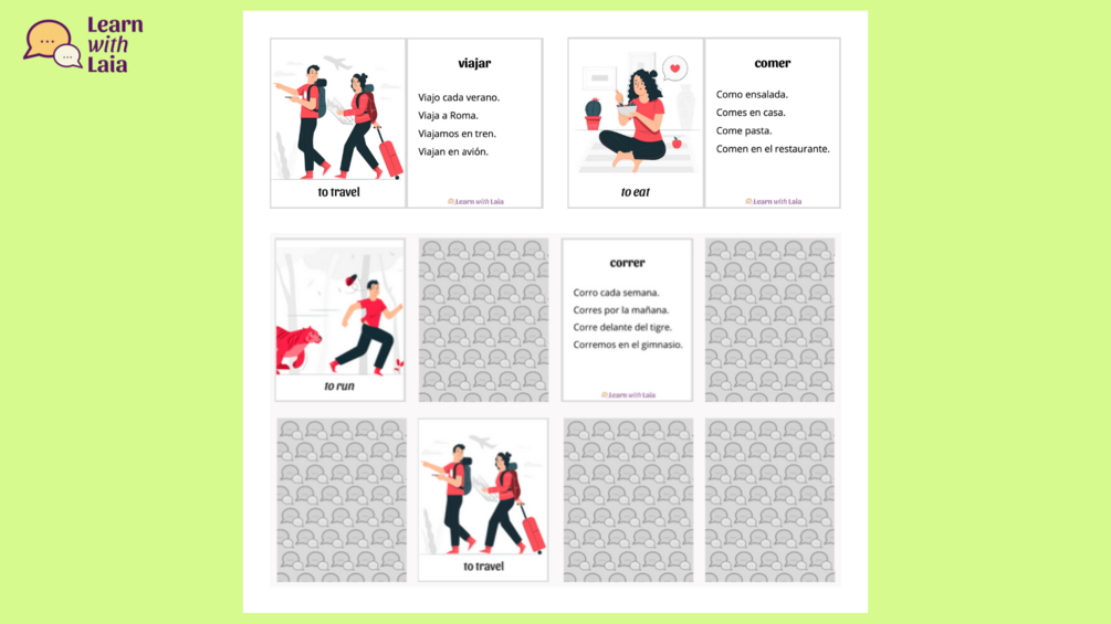 - Otro lado: verbo en español + frases de ejemplo